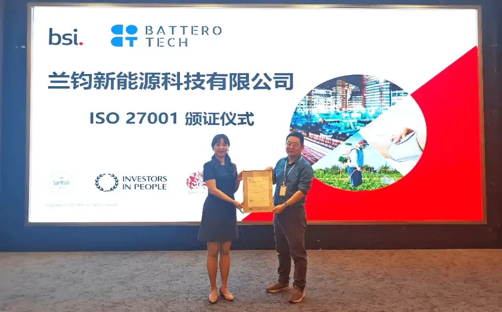 近日,兰钧新能源科技有限公司顺利通过BSI专家团队多轮严格审核,荣获了BSI 颁发的ISO/IEC 27001信息安全管理体系认证证书。兰钧新能源科技有限公司IT总监何金鑫、BSI东南区标准应用方案总监项真真出席了此次颁证仪式。