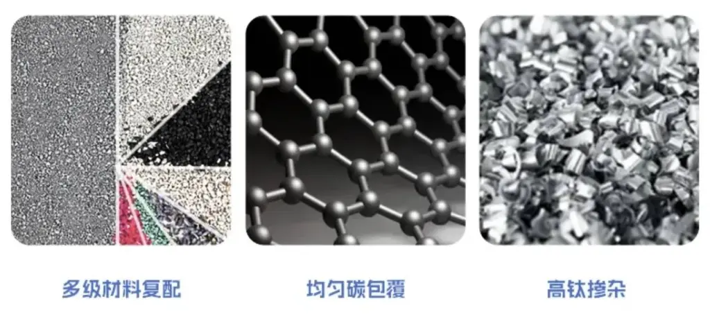 多级材料复配、均匀碳包覆、高钛掺杂