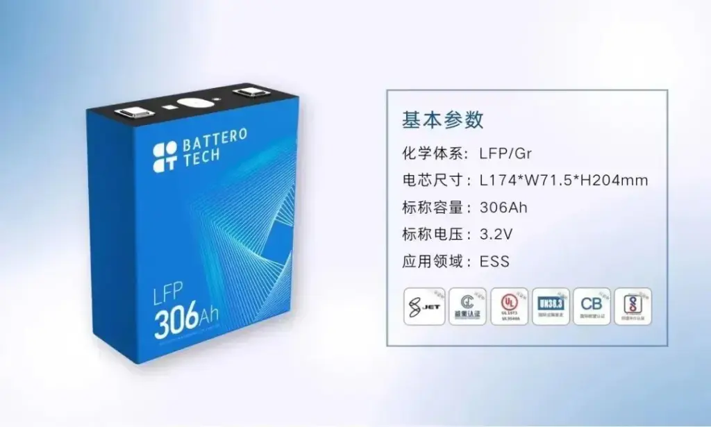 值得一提的是,306Ah大容量电芯具备大型储能通用尺寸,在现有产品基础上对能量和寿命进行了全面升级,主打工商业储能场景。