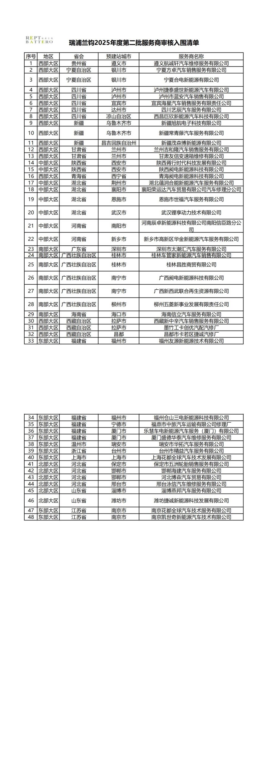 经过对企业资质、服务能力、过往业绩等多方面的综合评估与严格筛选,最终脱颖而出的企业即将成为瑞浦兰钧2025年售后授权服务商团队的一员。这些入选企业凭借其卓越的实力与独特的优势,在激烈的竞争中成功胜出。
