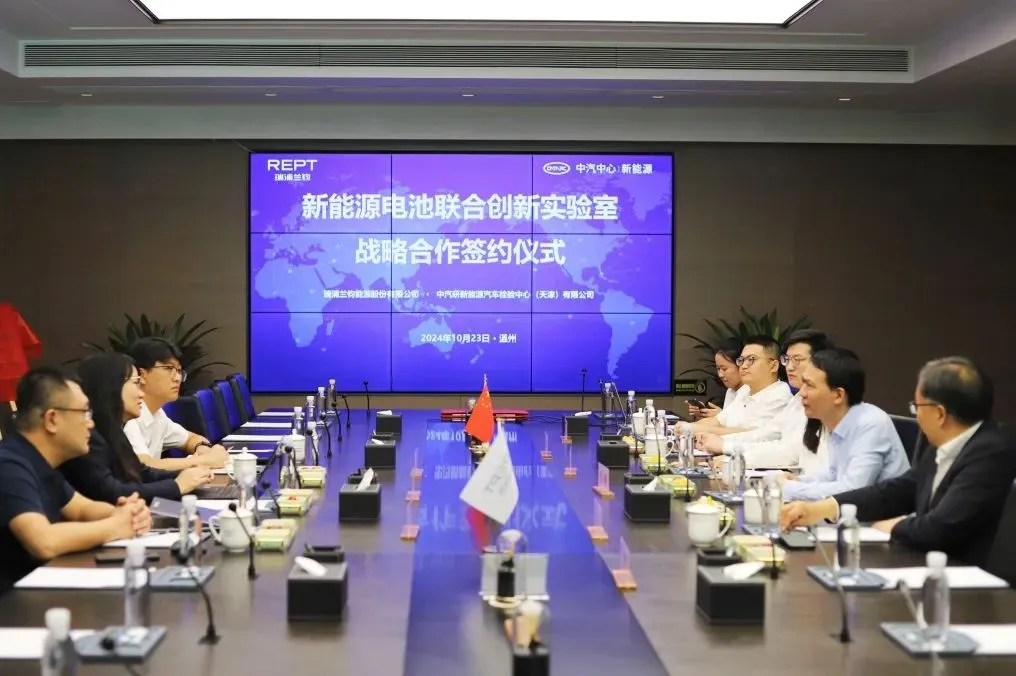 2024年10月23日,瑞浦兰钧和中国汽车技术研究中心有限公司(以下简称“中汽中心”)新能源检验中心达成战略合作协议,由双方携手共建的新能源电池联合创新实验室正式揭牌成立。