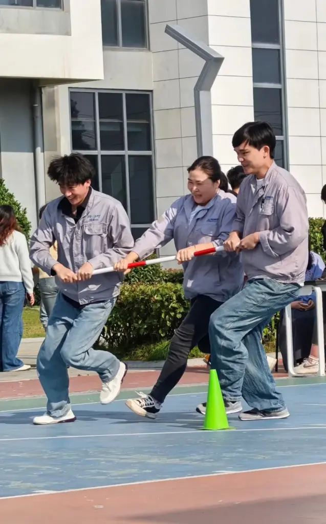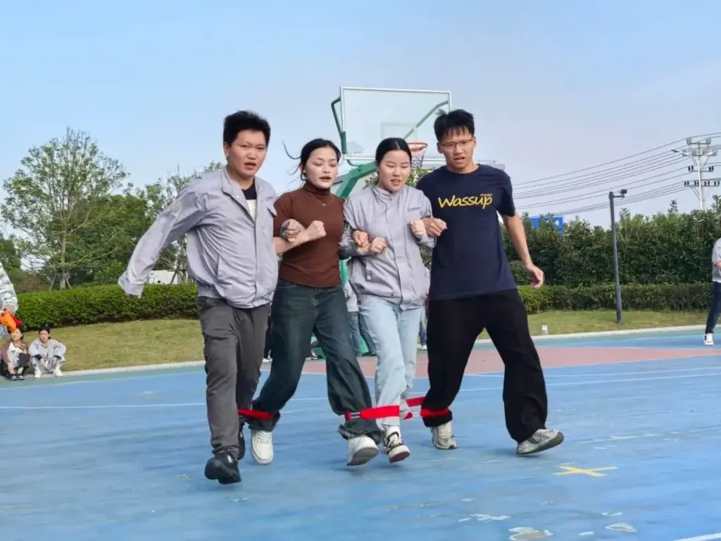 运动会分为团体赛和个人赛两个部分,吸引了全体员工的热情参与。在团体赛中,除了传统的篮球赛、8字跳大绳、拔河等项目外,还特别设置了旋风跑、一圈到底和巧接彩球等趣味团体竞赛项目,现场欢声笑语不断,气氛热烈。这些项目不仅考验了参赛者的体力和技巧,更展现了团队协作精神。